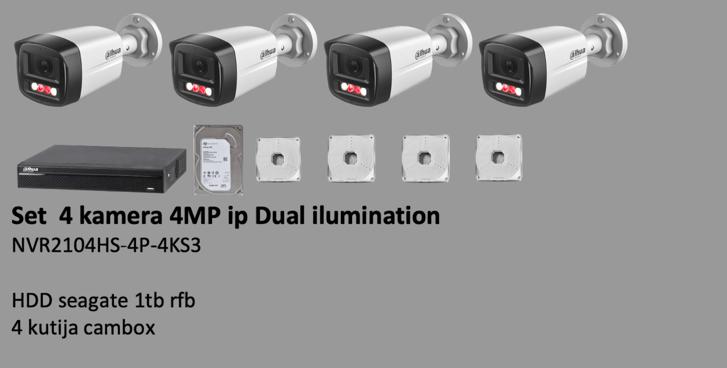 Ky set me 4 kamera IP sjell siguri moderne për shtëpinë ose biznesin tuaj. Falë sistemit Smart Dual Light, kamerat ndriçojnë automatikisht kur zbulojnë lëvizje dhe regjistrojnë me ngjyra të plota edhe natën.